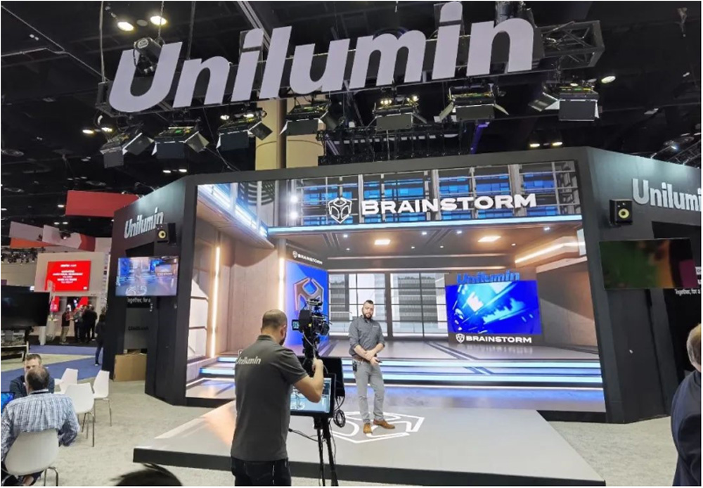 Alla fiera, Unilumin, insieme al suo partner del settore verde Brainstorm, ha utilizzato lo "schermo di sfondo + riquadri" per ricreare la fase di produzione virtuale e ha dimostrato visivamente il semplice processo di ripresa e gli effetti vividi attraverso la pratica pratica.
